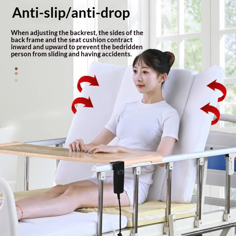 Adjustment Angles: Backrest Lifting Angle: 0-85°; Leg Bending Angle: -55-30°; Standing Angle: 0-87°; Turning-over Angle: 0-70°.
