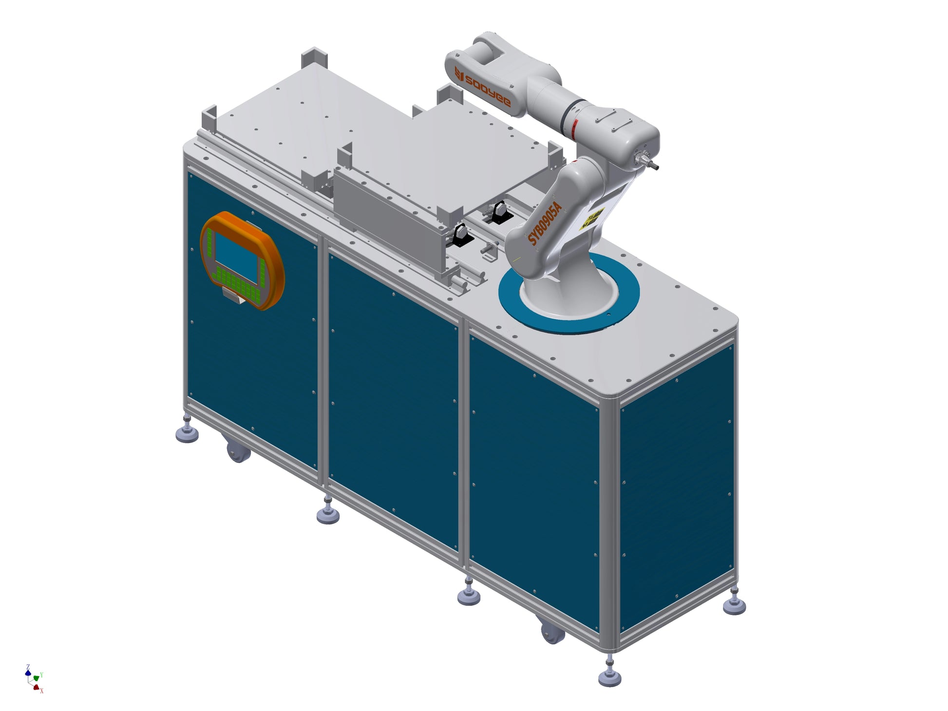 The SYB0905A-YT is a 6-axis industrial robot designed for flexible automation with a 5 kg rated payload and a 900 mm working reach. It offers excellent motion flexibility, reliable performance, and is suitable for a wide range of manufacturing applications such as material handling, pick-and-place, assembly, dispensing, and machine tending. This robot is ideal for small to mid-sized automation tasks and highly adaptable for compact production lines.