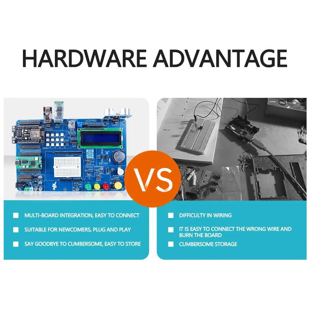 The Tscinbuny ZYA0031 Starter Kit is an all-in-one IoT programming and training set designed for beginners and educators. It includes ESP8266, ESP32, NANO, and AVR development boards with complete PDF tutorials for learning C/C++ coding. This educational electronics kit helps users explore sensor integration, wireless networking, and microcontroller programming. Perfect for IoT projects, classroom teaching, and maker workshops, it provides a hands-on approach to building smart, connected devices with clear, step-by-step guidance.